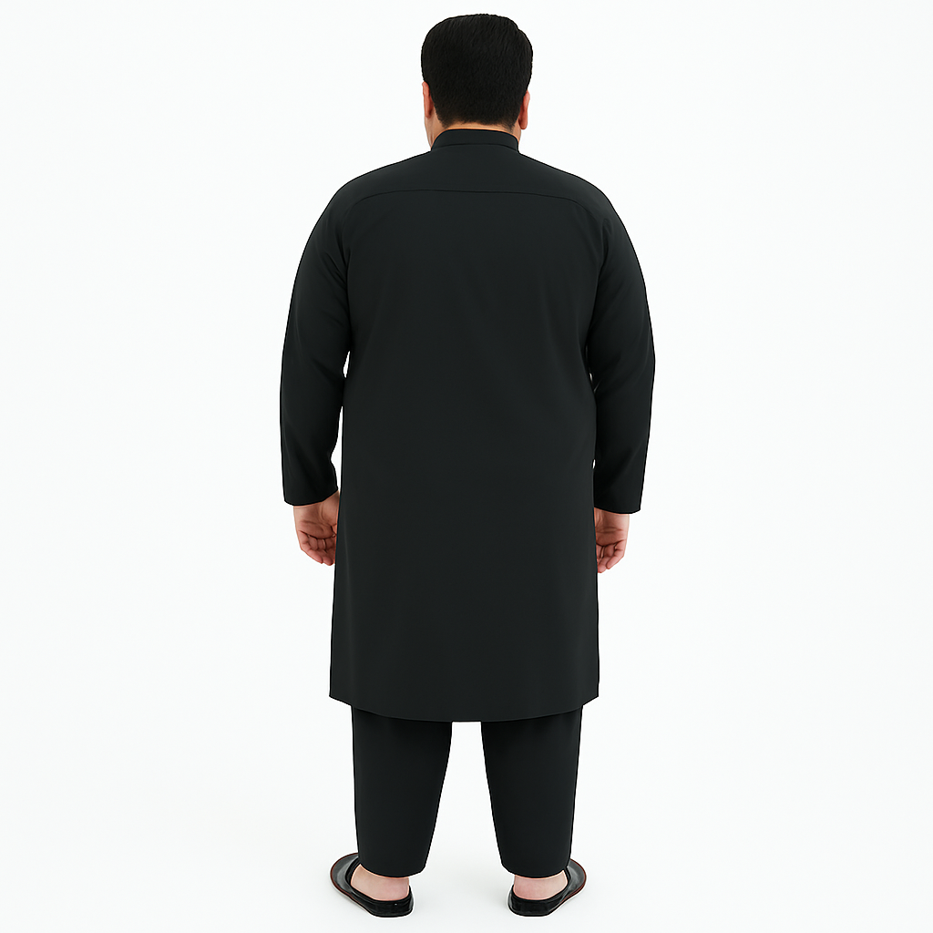 Experience the perfect blend of tradition and ease with our Black Washing Wear Kurta Shalwar, tailored specifically for plus-size men. Made from high-quality washing wear fabric, this suit offers a soft, breathable feel with wrinkle-resistant convenience. Featuring a classic band collar, front placket with buttons, and a relaxed shalwar, it’s ideal for both casual gatherings and formal occasions.📦 Fabric: