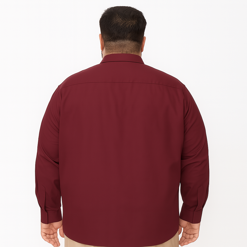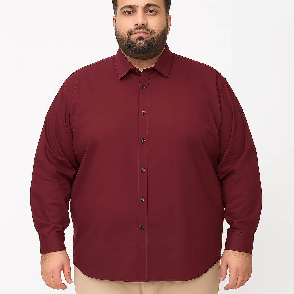 Elevate your everyday style with our Deep Maroon Solid Plus Size Casual Shirt. Crafted for comfort and versatility, this long sleeve shirt features a clean, classic design with a full front, crisp collar, and cuffed sleeves. Perfect for both casual and semi-formal looks, it pairs effortlessly with jeans or chinos. Made with breathable fabric and tailored for a roomy, relaxed fit to suit plus-size frames.