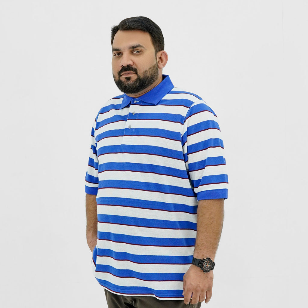 Upgrade your casual style with this Plus-Size Classic Striped Polo Shirt, featuring a bold blue and white stripe design with subtle red accents for a timeless appeal. The contrasting solid blue collar enhances the structured look, while the loose fit ensures maximum comfort for plus-size wearers. Made from a breathable, soft fabric, this polo is perfect for all-day wear, whether for casual outings or semi-formal settings.Key Features: