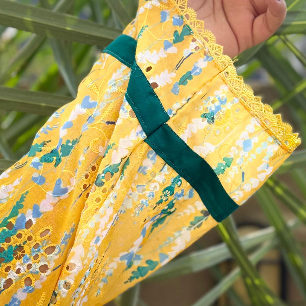 ☀️ Yellow printed lawn with chikankari embroidery